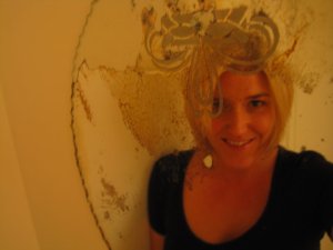 Forced smile, a self-portrait, summer 2010. Looking back, taking my picture through a decayed looking-glass was fitting.