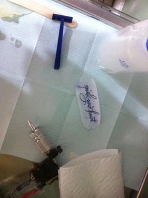 At Passage Tattoo in Toronto, I take a quick pic while Chris gets things ready for our session.